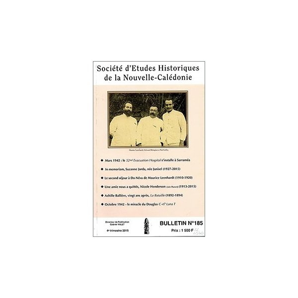 Table des matières du bulletin n° 185 (4è trimestre 2016) de la Société d’études historiques de la Nouvelle-Calédonie :