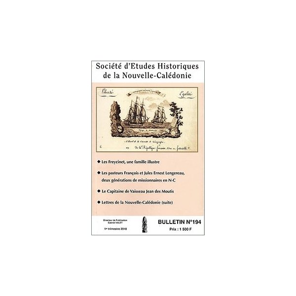 Table des matières du bulletin n° 194 (1er trimestre 2018) de la Société d’études historiques de la Nouvelle-Calédonie : -« Les Freycinet, une famille illustre » par Gabriel Valet, -« Les pasteurs François et Jules Ernest Lengereau, deux générations de missionnaires en N-C » par Luc Legeard. -« Le Capitaine de Vaisseau Jean des Moutis » par Jean-Yves Meunier. « Lettres de la Nouvelle-Calédonie (suite) » par Benoît Delvinquier et Fabienne Fischer.